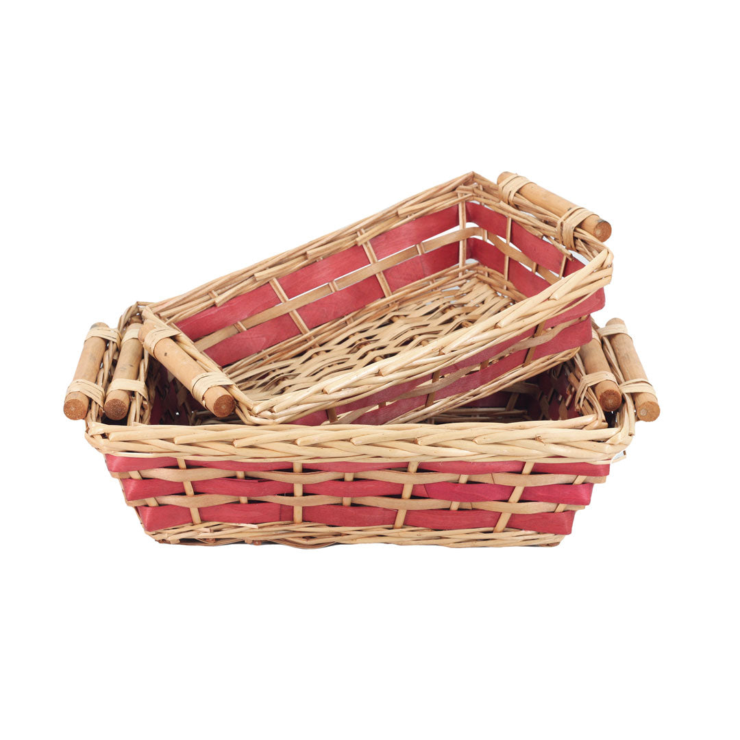 Add a bold pop of color to your packaging with this rectangular red wicker basket. Great for gifts, product displays, or decorative storage.