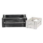 A rustic bleached black wood crate set that blends style and practicality. Perfect for storing items or adding a vintage accent to your home décor.