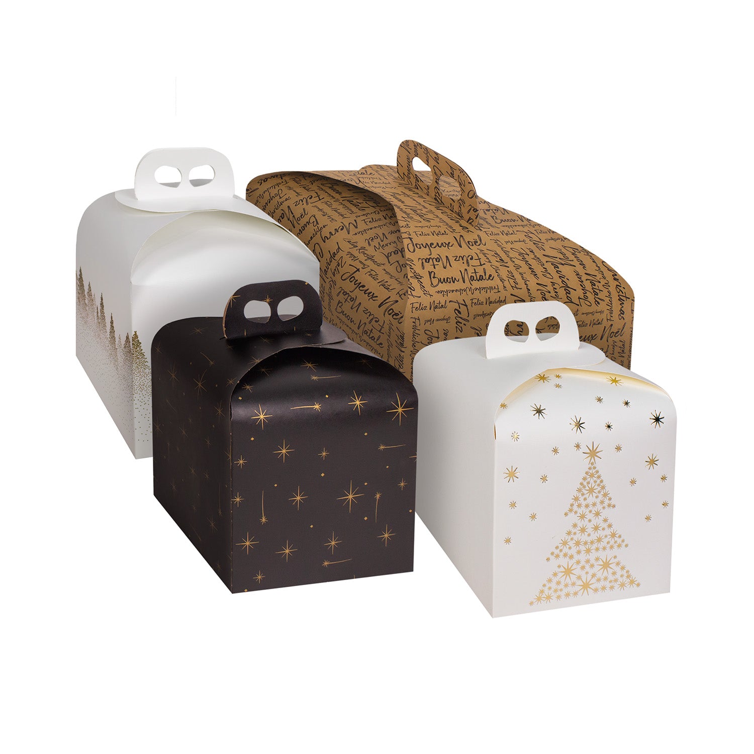 Célébrez avec ces boîtes-cadeaux festives au design de fête et poignée intégrée. Parfaites pour les douceurs, cadeaux et pâtisseries. Solides, faciles à assembler et idéales pour les emballages de fêtes. Disponibles en plusieurs couleurs et tailles.