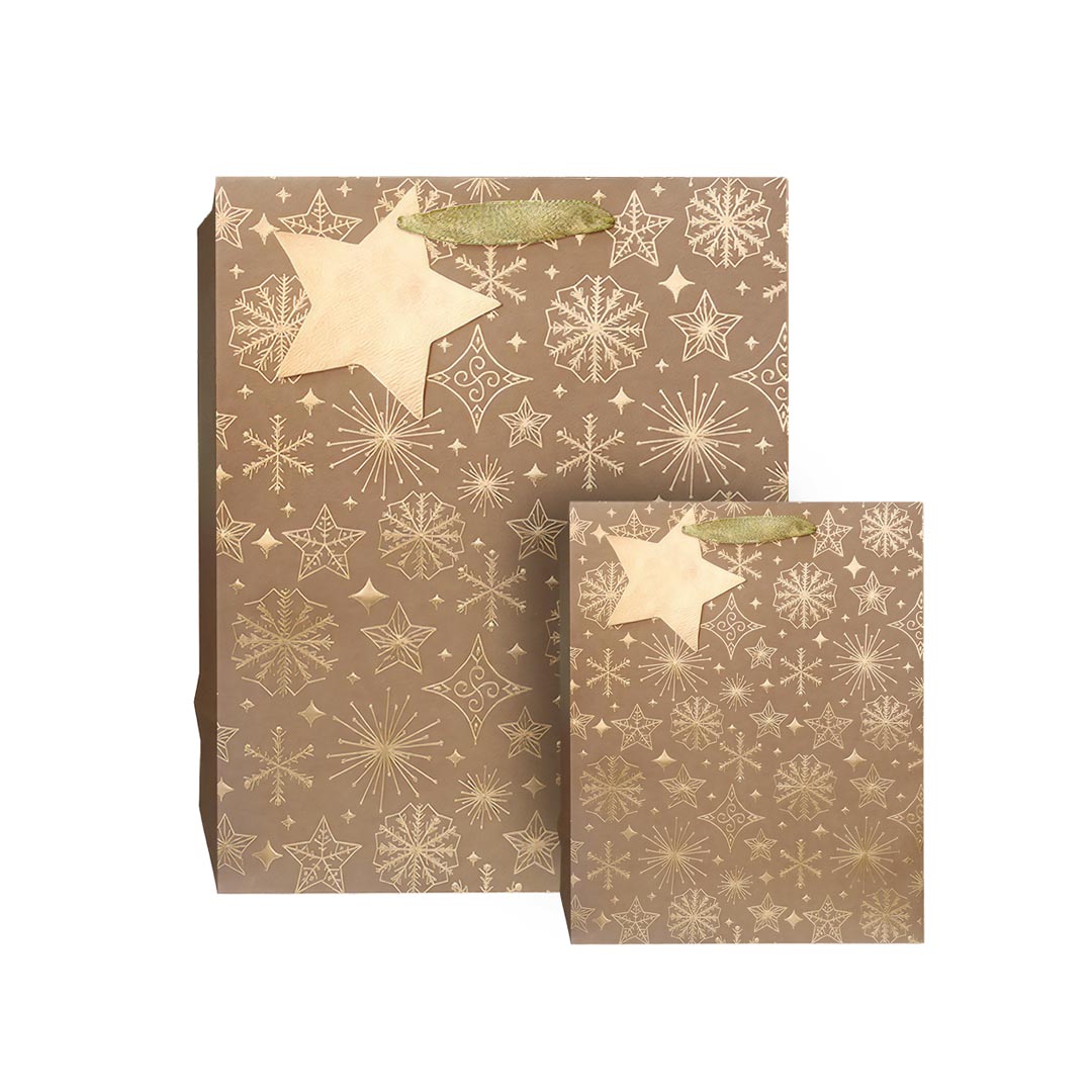 Sacs-cadeaux décorés d’étoiles dorées, ajoutant une touche festive et chaleureuse aux cadeaux des Fêtes. Leur motif scintillant garde les présents bien emballés avec un style saisonnier agréable.