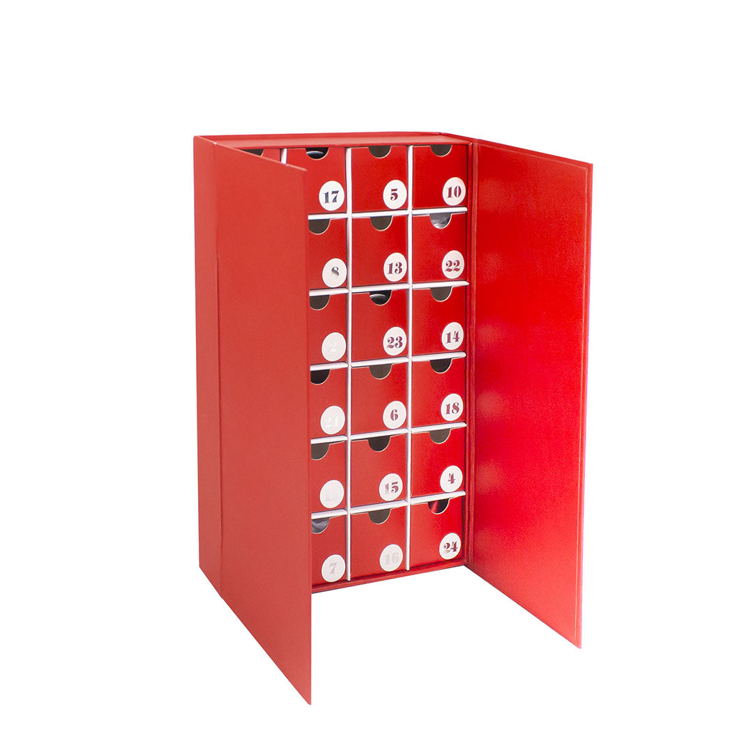 A festive advent calendar designed with small numbered windows to hide surprise treats. A fun and decorative way to count down to Christmas while keeping little gifts neatly tucked away.