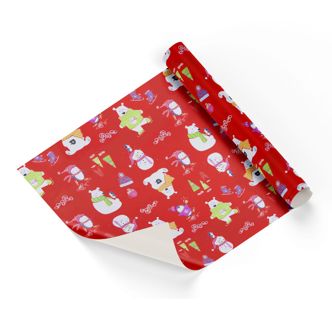 Add a festive touch with our bears and penguins on skates wrapping paper. Its cheerful Christmas pattern keeps gifts looking bright and neatly stored under the tree, ready for the holidays.