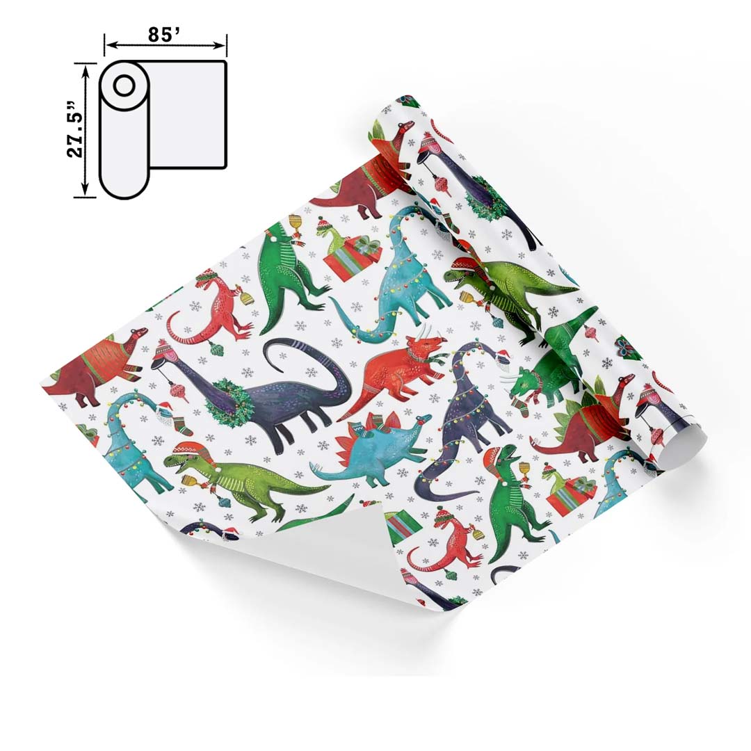 Childrens Christmas Dinosaurs White Base Wrapping Paper
