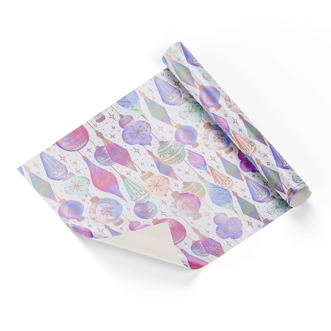 Add a festive touch with our colored ornaments wrapping paper. Its cheerful Christmas pattern keeps gifts looking bright and neatly stored under the tree, ready for the holidays.