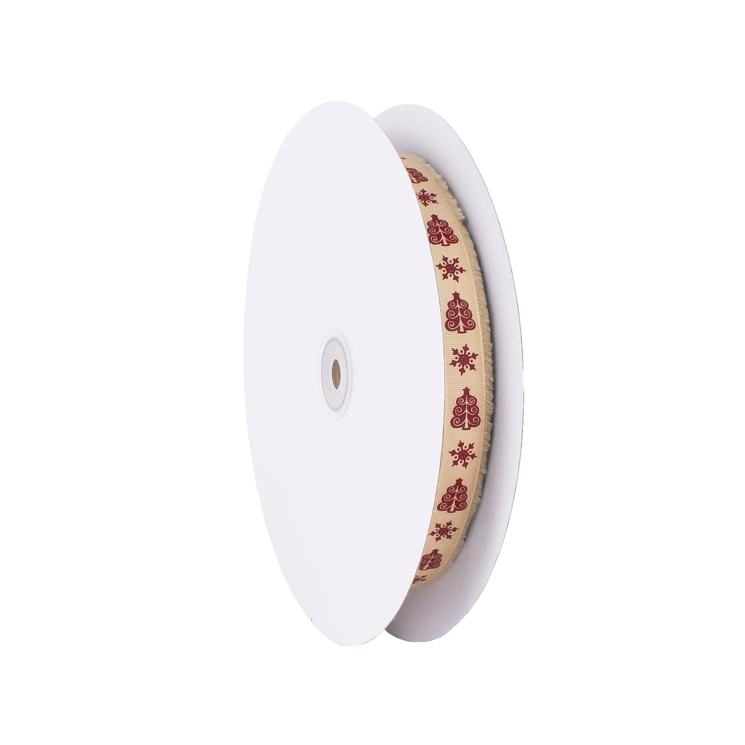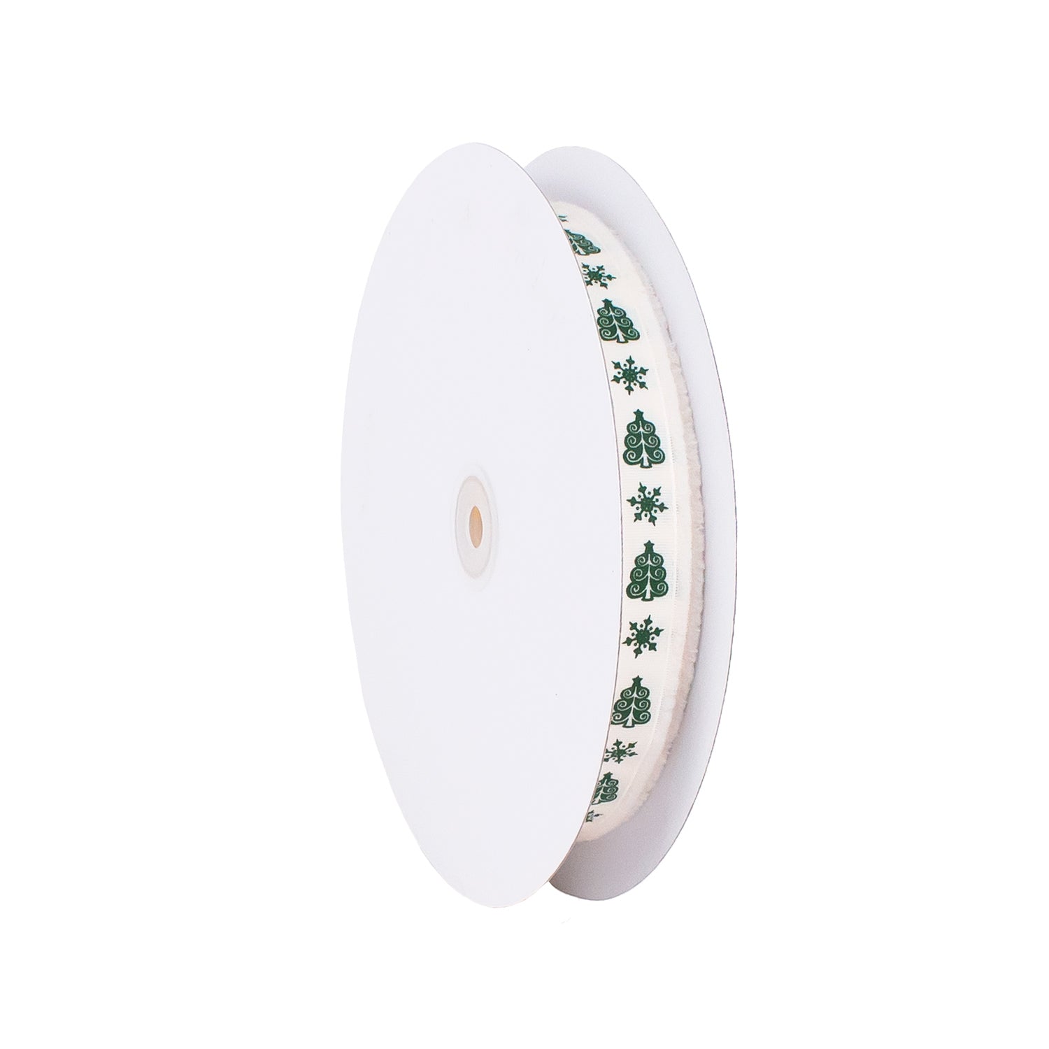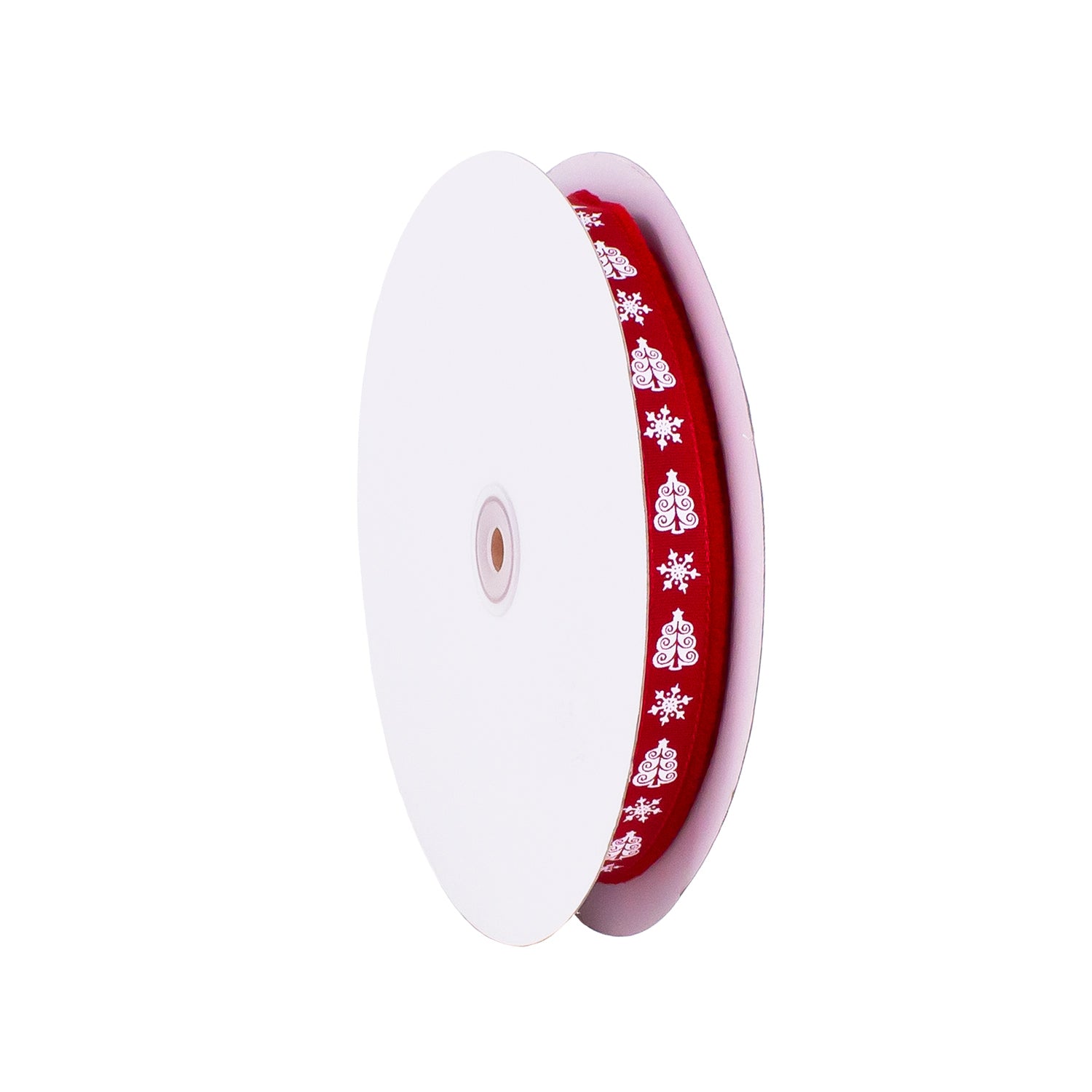 Festive ribbon featuring classic Christmas trees and snowflakes brings cheerful charm to seasonal projects. Ideal for gift wrapping, cards, crafts, and party favors. Available in multiple colors.