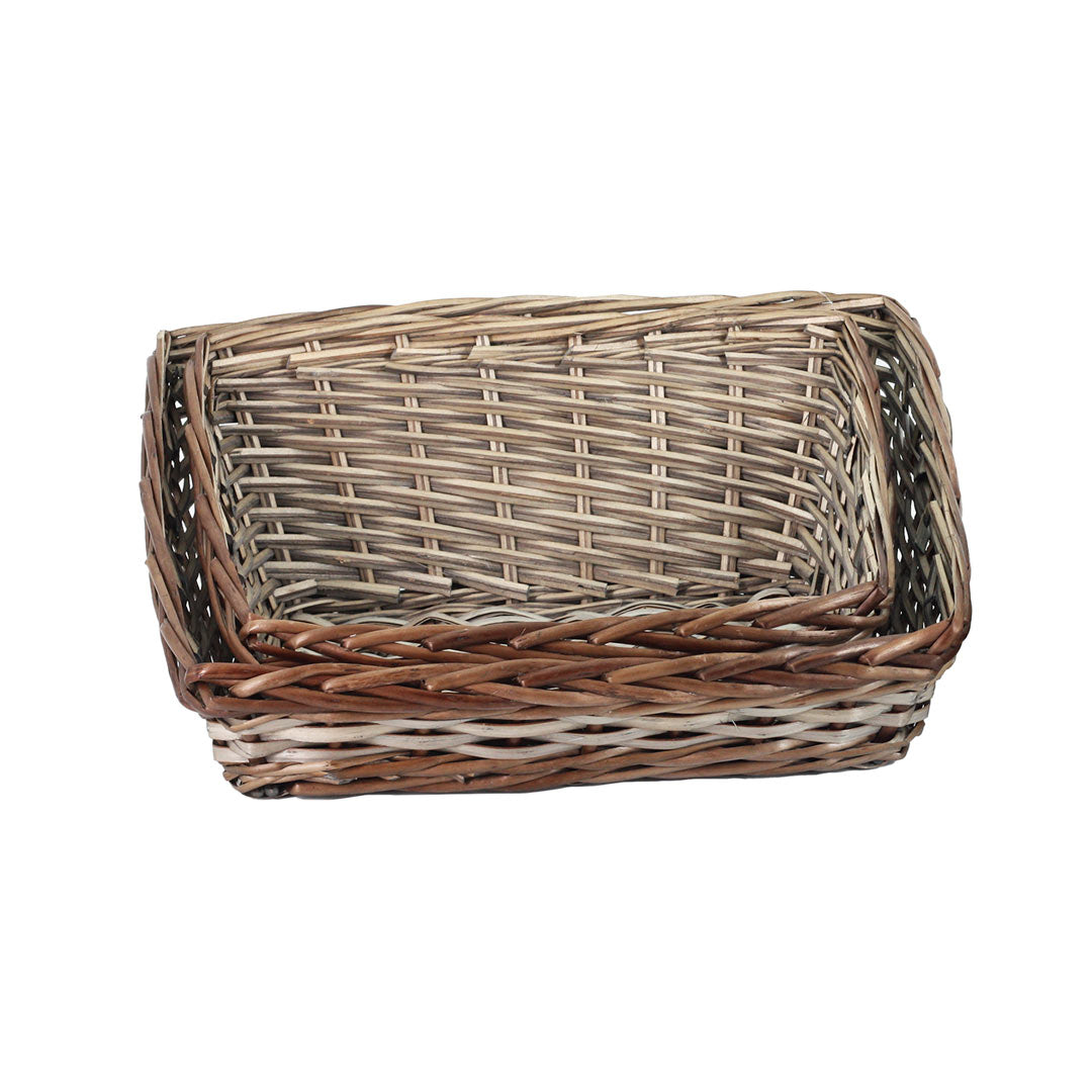 A woven basket with a sloped front for easy access to items. Perfect for décor and storage in entryways, kitchens, or shelves while keeping essentials visible.